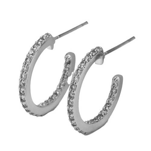 Orecchini a cerchio con zirconi e chiusura a farfalla.